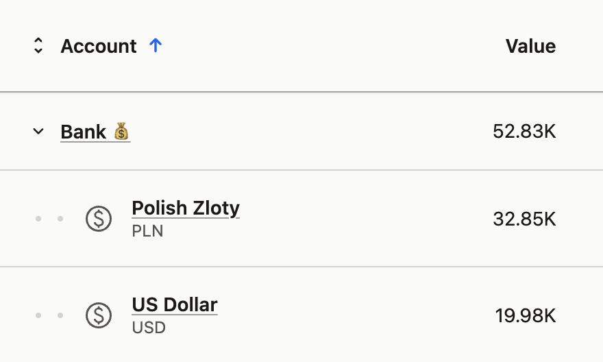 Ideally, accounts in your portfolio should have a 1:1 relationship with your real-life accounts. This way, you will know instantly where your assets are.