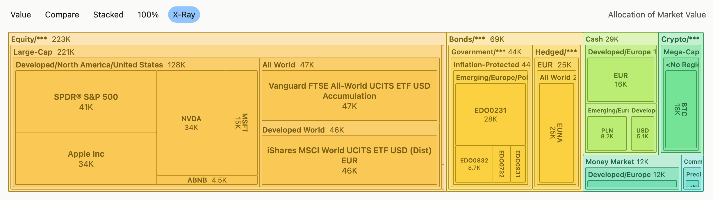 X-Ray chart showing category & region breakdown of the whole portfolio